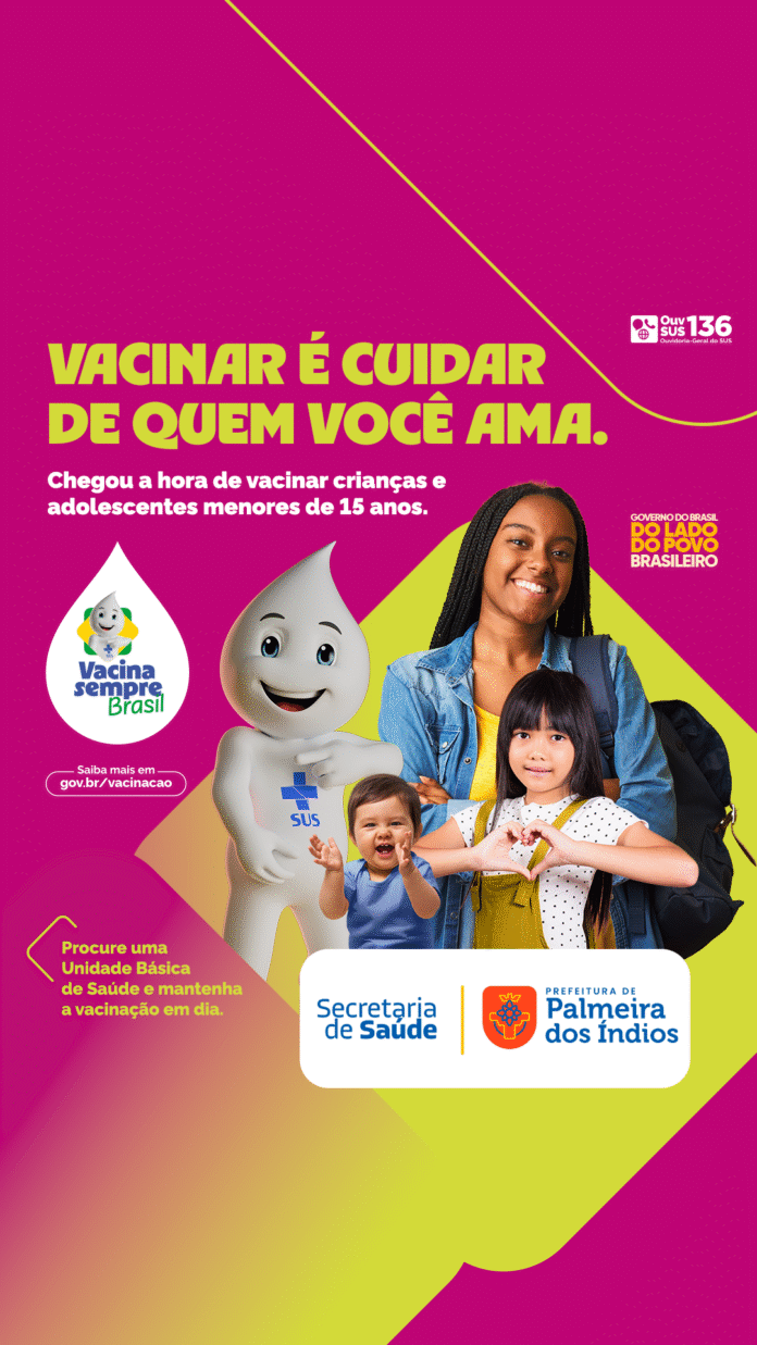 A Secretaria Municipal de Saúde (SMS) de Palmeira dos Índios, por meio do setor Programa Nacional de Imunização (PNI), informa que começa nesta segunda-feira (13) a Campanha de Multivacinação – Atualização da Caderneta de Vacinação da Criança e do Adolescente, no município.