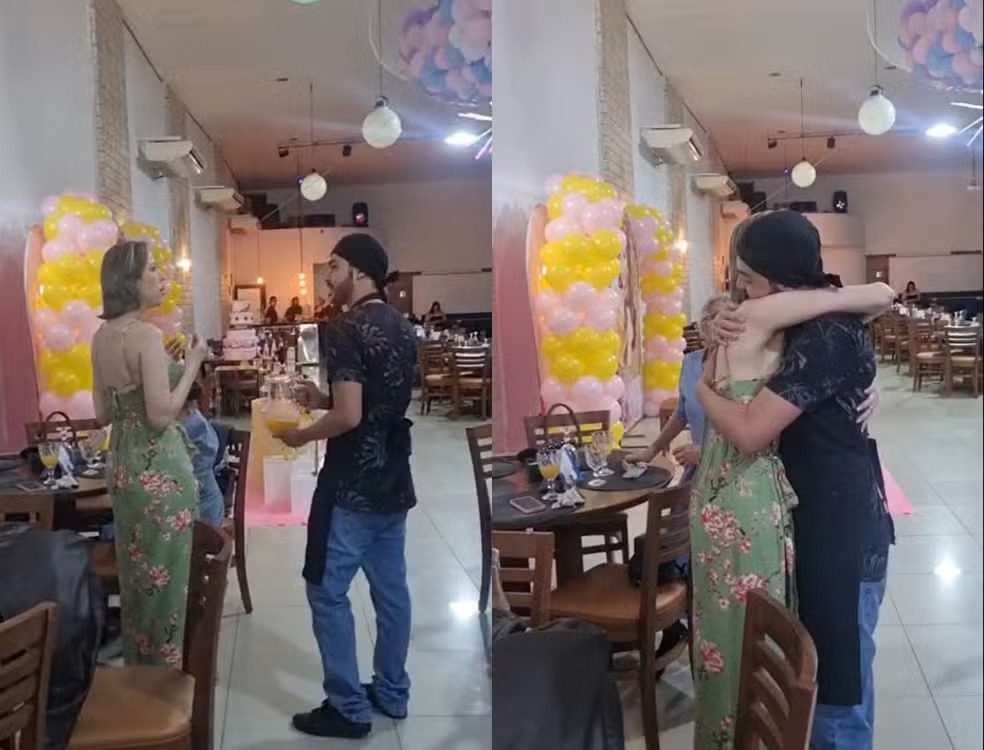 Uma mulher transplantada conheceu o próprio doador de medula óssea disfarçado de garçom em uma festa de aniversário. Ritcheli Stein, de 34 anos, reconheceu Arthur Souza Colares, que levava uma garrafa de suco, assim que ele se aproximou dela. O momento foi registrado em vídeo e viralizou nas redes sociais (assista acima).