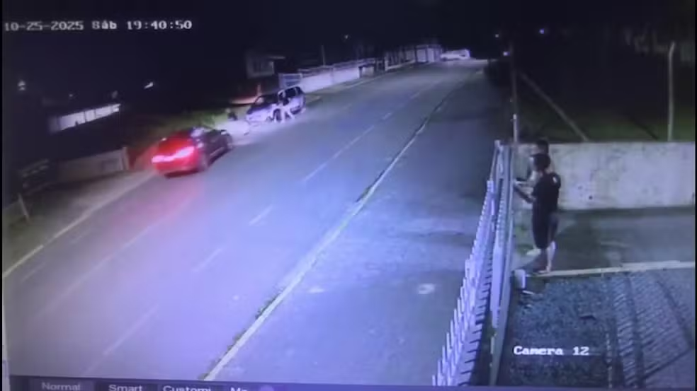 O caso aconteceu no sábado (25), enquanto o homem registrava um boletim de ocorrência por ameaças na sede da Polícia Militar. Um vídeo mostra o momento em que o carro avança contra ele.