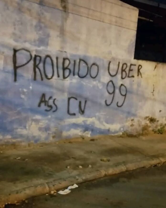 Os líderes do tráfico de drogas ligados à facção criminosa Comando Vermelho (CV) proibiram a entrada de carros e motos por aplicativos em comunidades de São João de Meriti, na Baixada Fluminense. A mensagem contra os trabalhadores foi deixada em diversos muros nas regiões de São Mateus e Tomazinho, no Complexo da Jaqueira, após pichação.