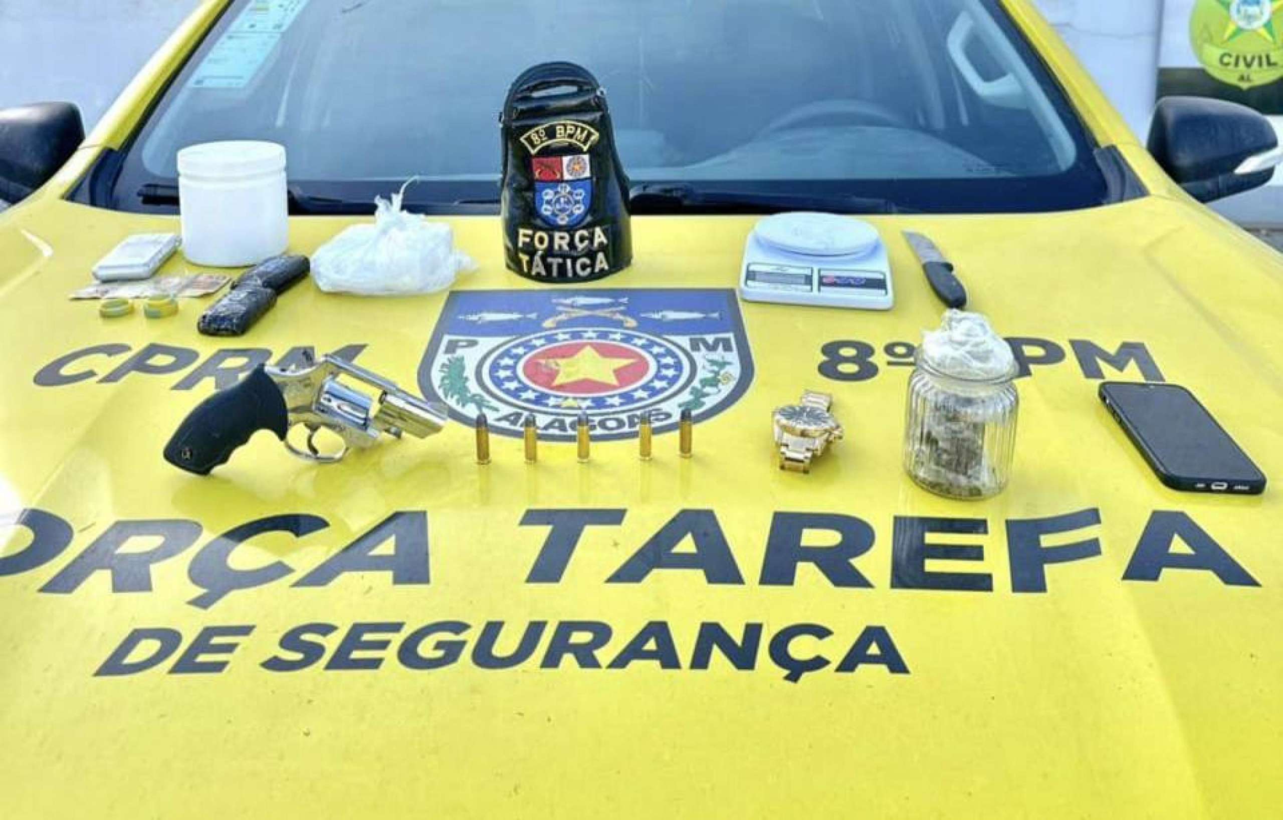 A Polícia Militar de Alagoas apreendeu 22 armas de fogo e mais de 42 quilos de drogas em ações operacionais por todo o estado, entre o último domingo (02) e este sábado (08).