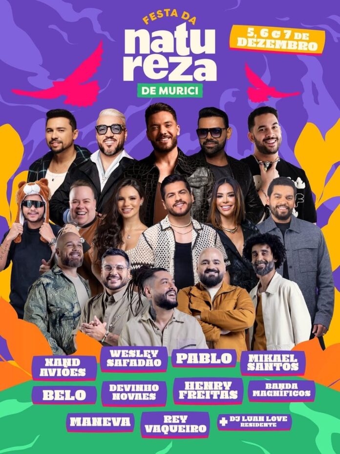 A Prefeitura de Murici divulgou a programação completa da 19ª edição da Festa da Natureza, que será realizada nos dias 5, 6 e 7 de dezembro, na Praça Padre Cícero. A estrutura do evento já começou a ser montada, para oferecer ao público uma experiência única de uma edição que promete entrar para a história.